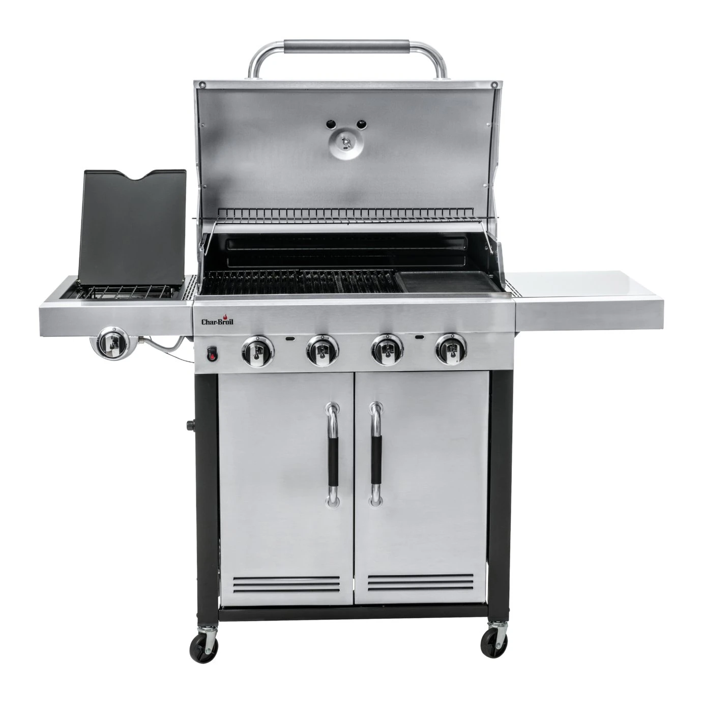 With an integrated griddle, this 4 burner grill offers a variety of ways to prepare meat, fish, vegetables, desserts and also breakfast. The comfort-grip handles offer a pleasant feel when handling.