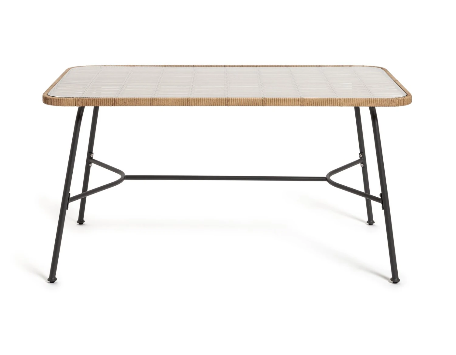 Eating al fresco is one of life's pleasures. That's why outdoor furniture is a must. Fashioned from bamboo in a popular rattan style, our 4-seater dining set is the perfect place to serve memorable meals. Spacious enough to seat up to six, our rectangular table has easy to wipe clean glass. The matt grey steel frame contrasts beautifully with the neutral tones of natural bamboo.
