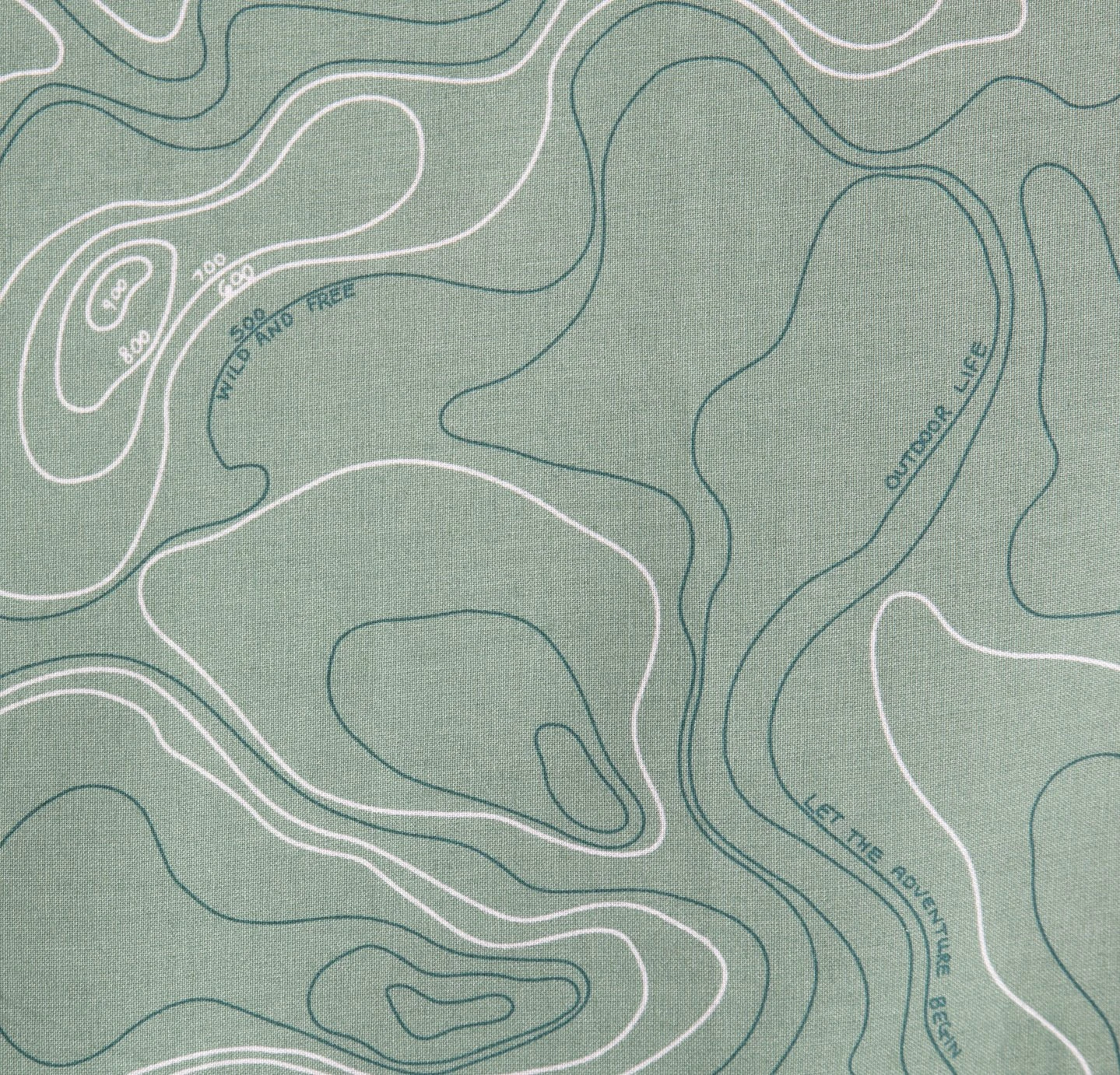 And that's not all. Flip over and reveal a calm green and white pattern featuring map contours and fun quotes.
