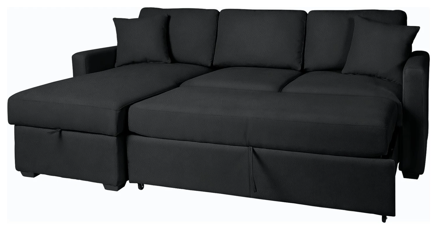 It opens out easily when you have guests to stay. And simply lift the chaise end to reveal hidden storage space to tuck away blankets, bedding or any living room clutter you want out of sight.