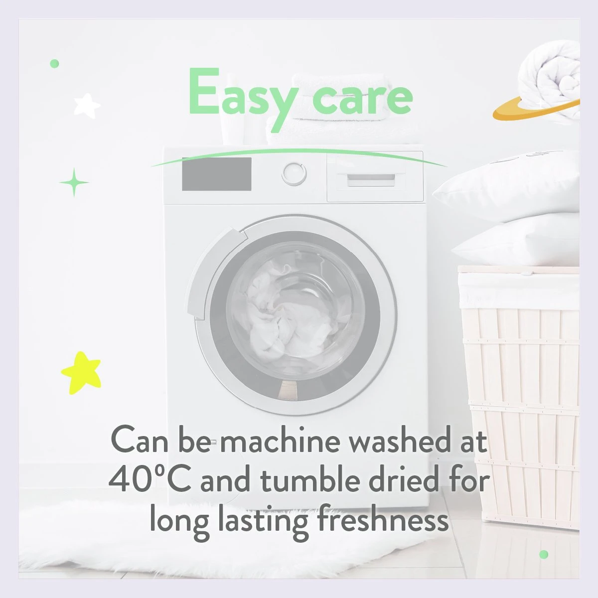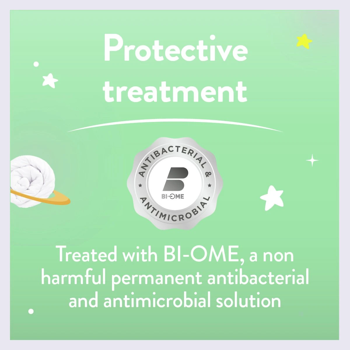The Slumberdown Little Slumbers Anti Bacterial Cotton duvet has been designed for children. It is carefully formulated with a permanent, antibacterial, antimicrobial, non-harmful odour control treatment, BI-OME® which protects textiles from the build-up of dustmites and odour causing bacteria. The reduced fill ensures your little one won't overheat at night. Independently tested by experts, so your little ones can enjoy a comfier, fresher and healthier sleep space. What's more this is Easy Care so can be machine washed and tumble dried.