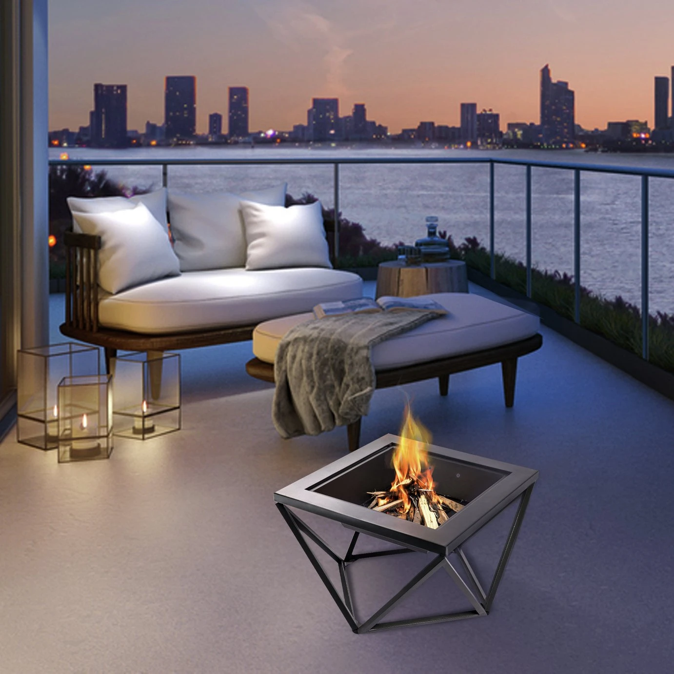 This geometric framed wood burning fire pit is the perfect addition to your outdoor space. Enjoy a cosy night by the fire or gather with family and friends. A protective mesh screen which sits above the logs and ensures flames stay lit on those breezy nights. The fire pit also comes with a grill and is easy to assemble with step by step instructions.